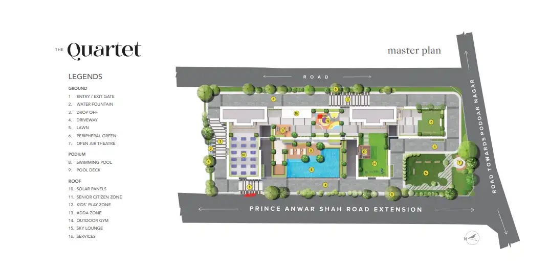 Sureka The Quartet is an exclusive new residential project by the Sureka Group, strategically located beside South City Mall on Prince Anwar Shah Road, one of the most desirable and high-demand corridors in South Kolkata. Surrounded by well-developed infrastructure, lush neighborhoods, and robust connectivity, this boutique project offers a rare combination of urban convenience and peaceful living in the heart of Tollygunge.